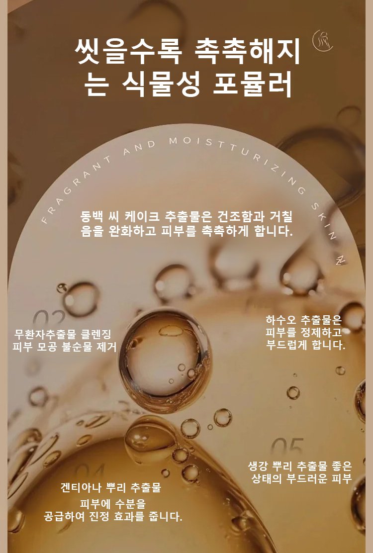 피부에 깊은 수분을 공급하여 부드럽고 촉촉한 느낌을 선사합니다.
