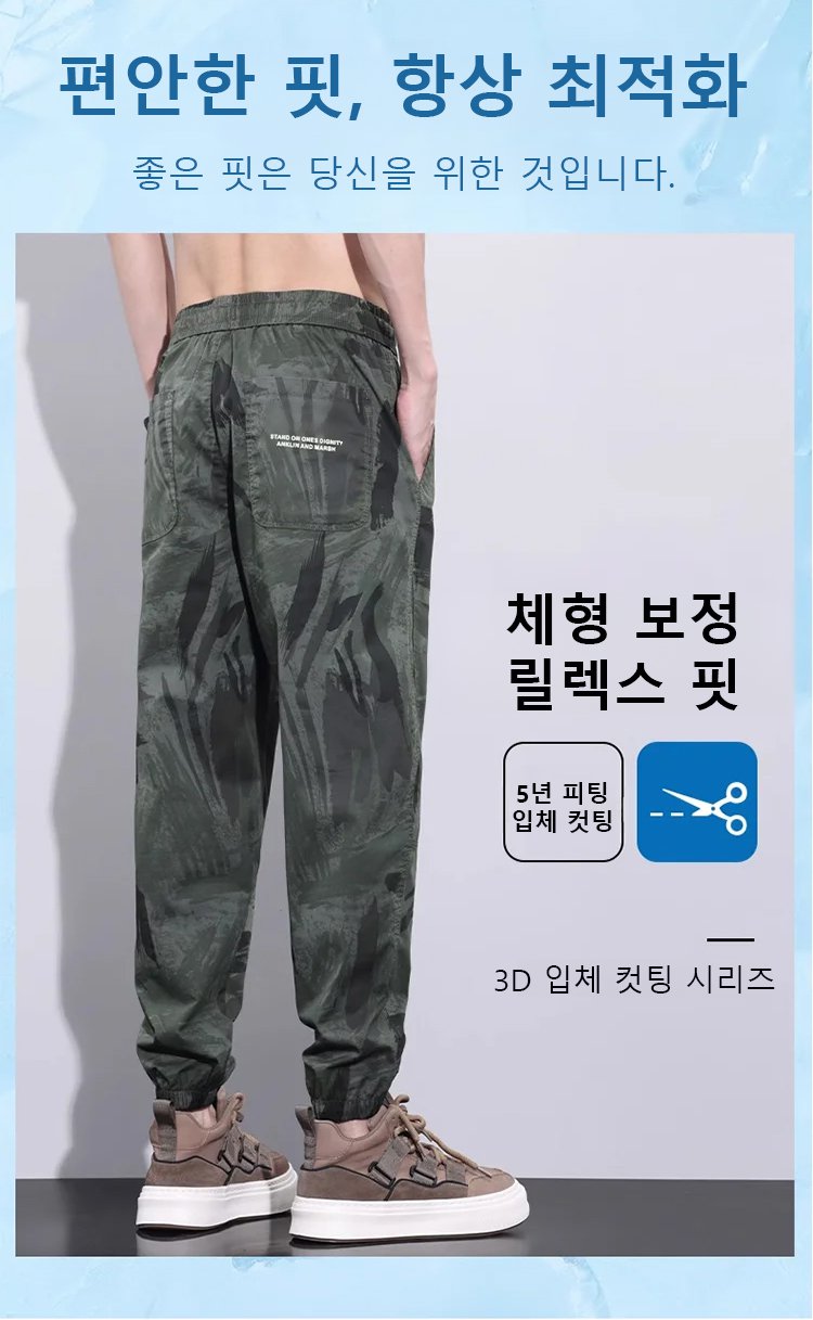 접촉 냉감 남성 아이스 실크 카모플라주 캐주얼 팬츠