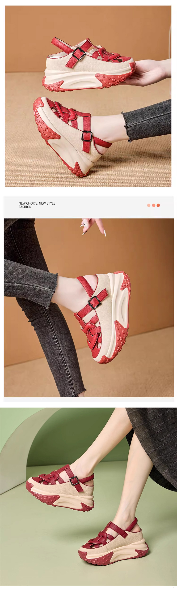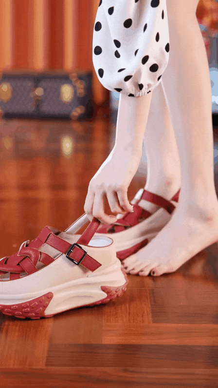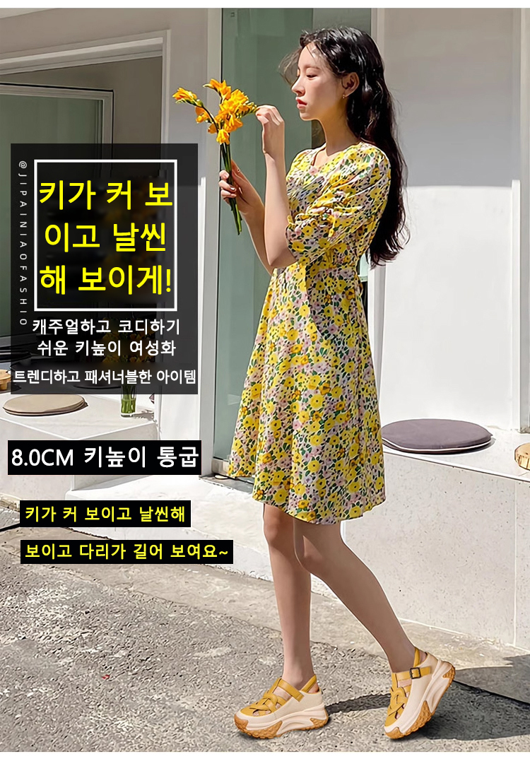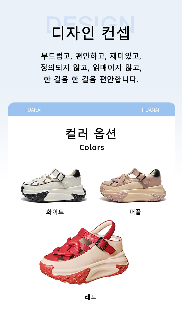 도파민 패션 통굽 리얼가죽 샌들